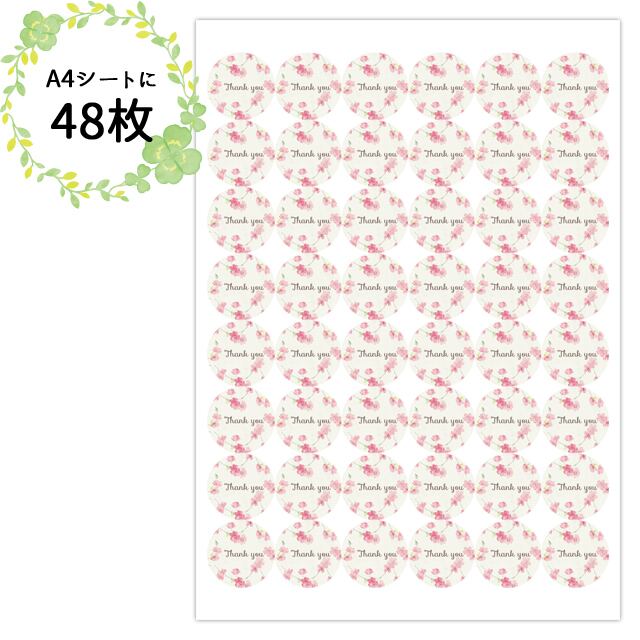 〈Thank youシール四角〉水彩タッチの花模様《ピンク》