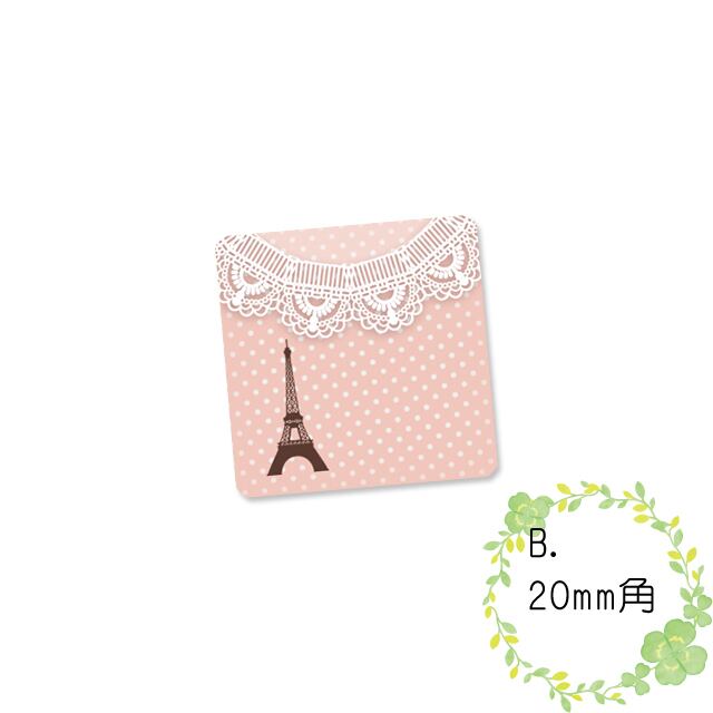 〈ショップシール四角〉エッフェル塔&レース《ピンク水玉05》5-52