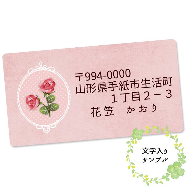 〈アドレスシール〉オーバルフレームの薔薇《ピンク・ストライプ》3-3