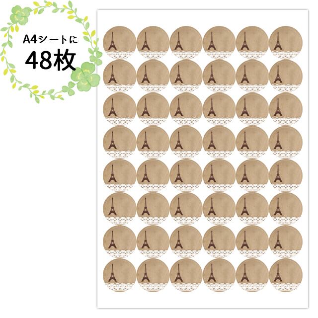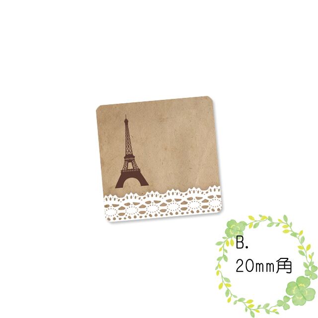 〈ショップシール四角〉エッフェル塔&レース《old paper風05》5-60