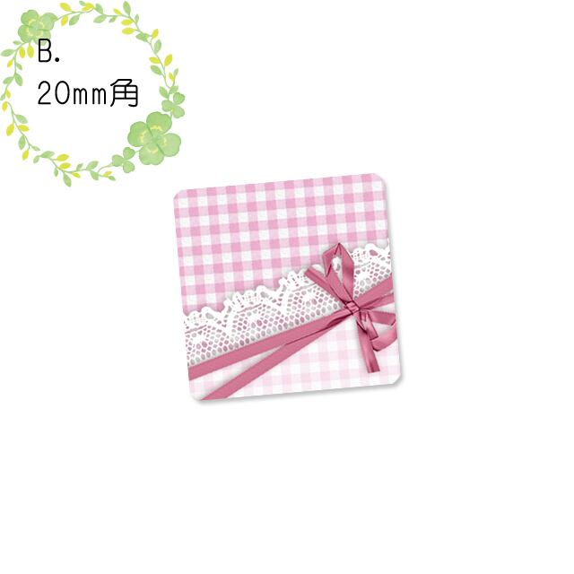 〈ショップシール四角〉クロスリボン ギンガムチェック《ピンク04》5-32